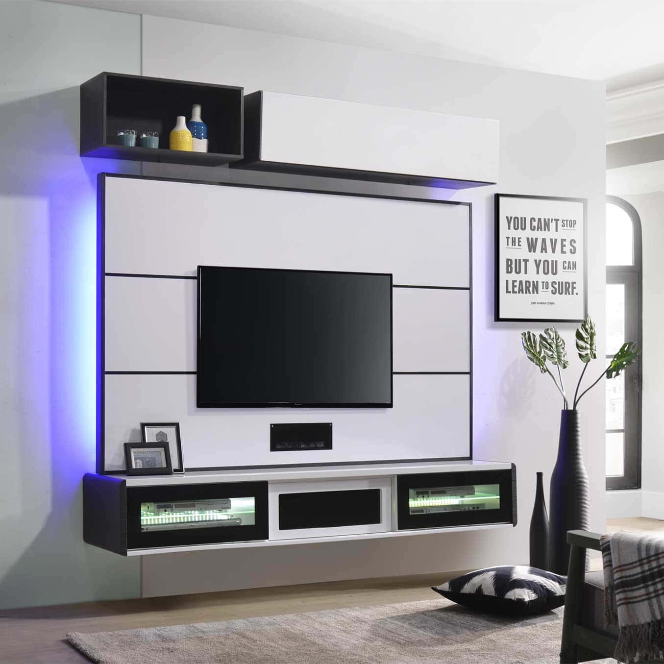 This wall TV cabinet your must order the basic compartment B part (back wall) C part (cabinet) . Besides, you can order the additional compartments. No matter how, you can decide & match how to put your compartment on wall.